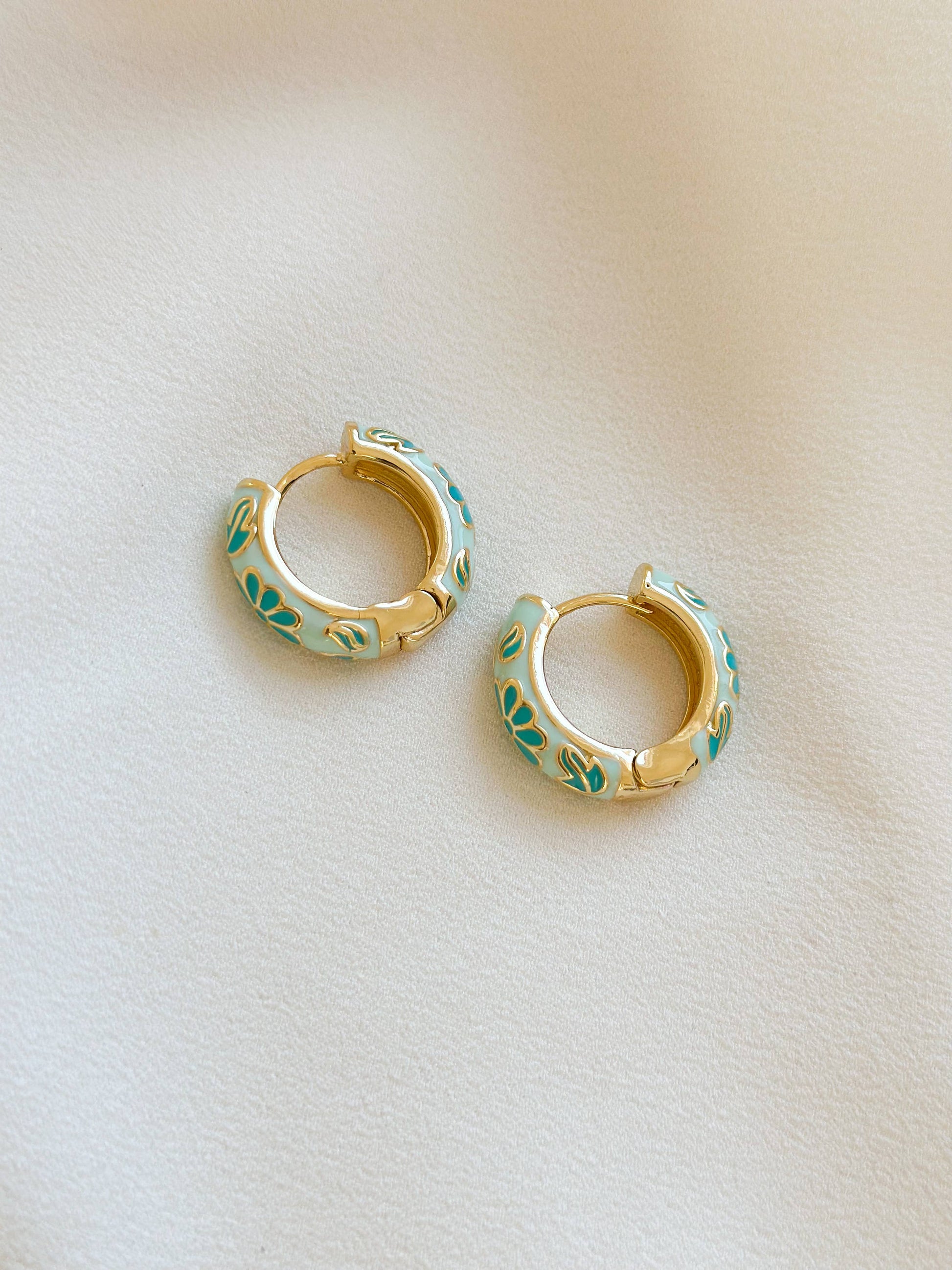 18k Gold Plated Mint Floral Enamel Hoop Earrings