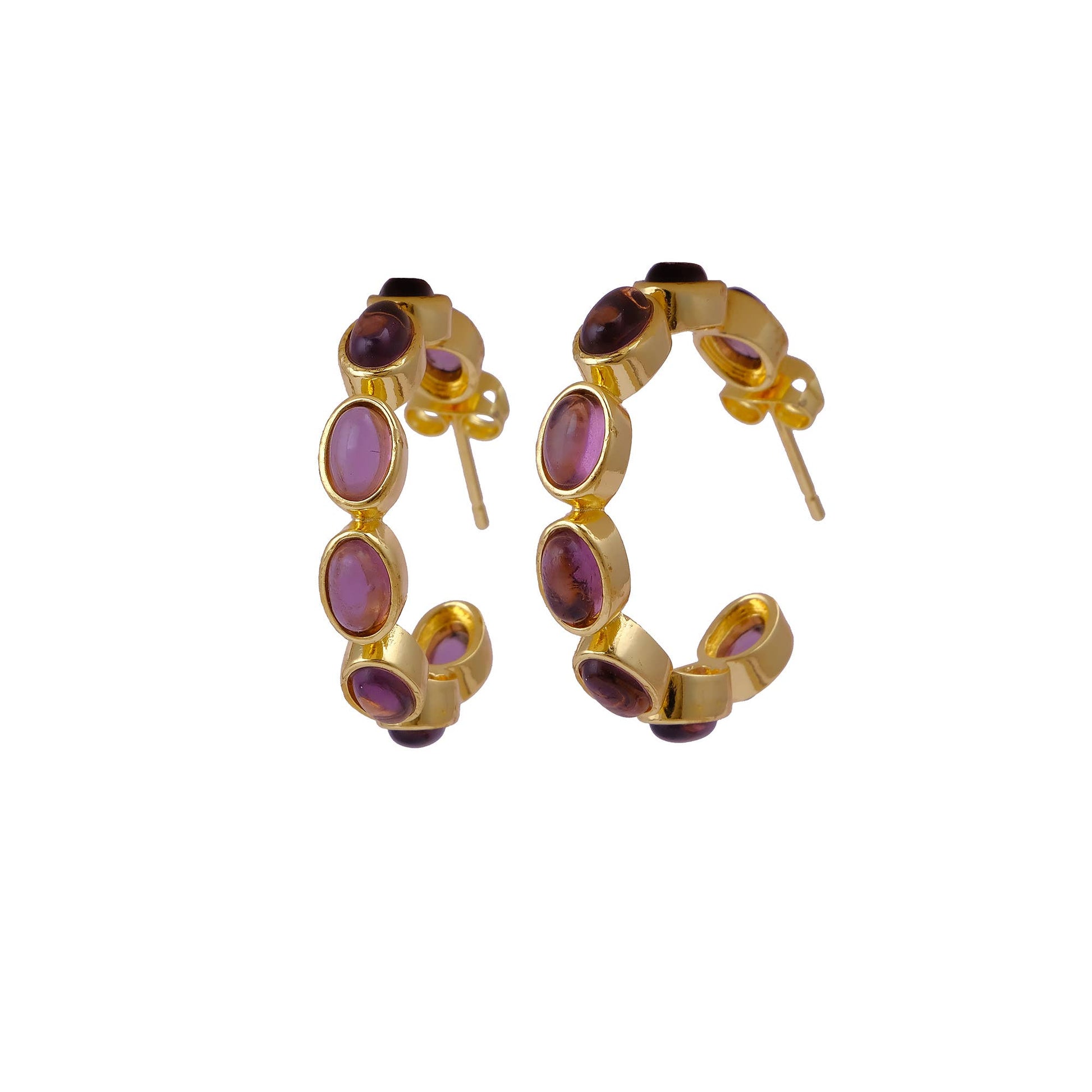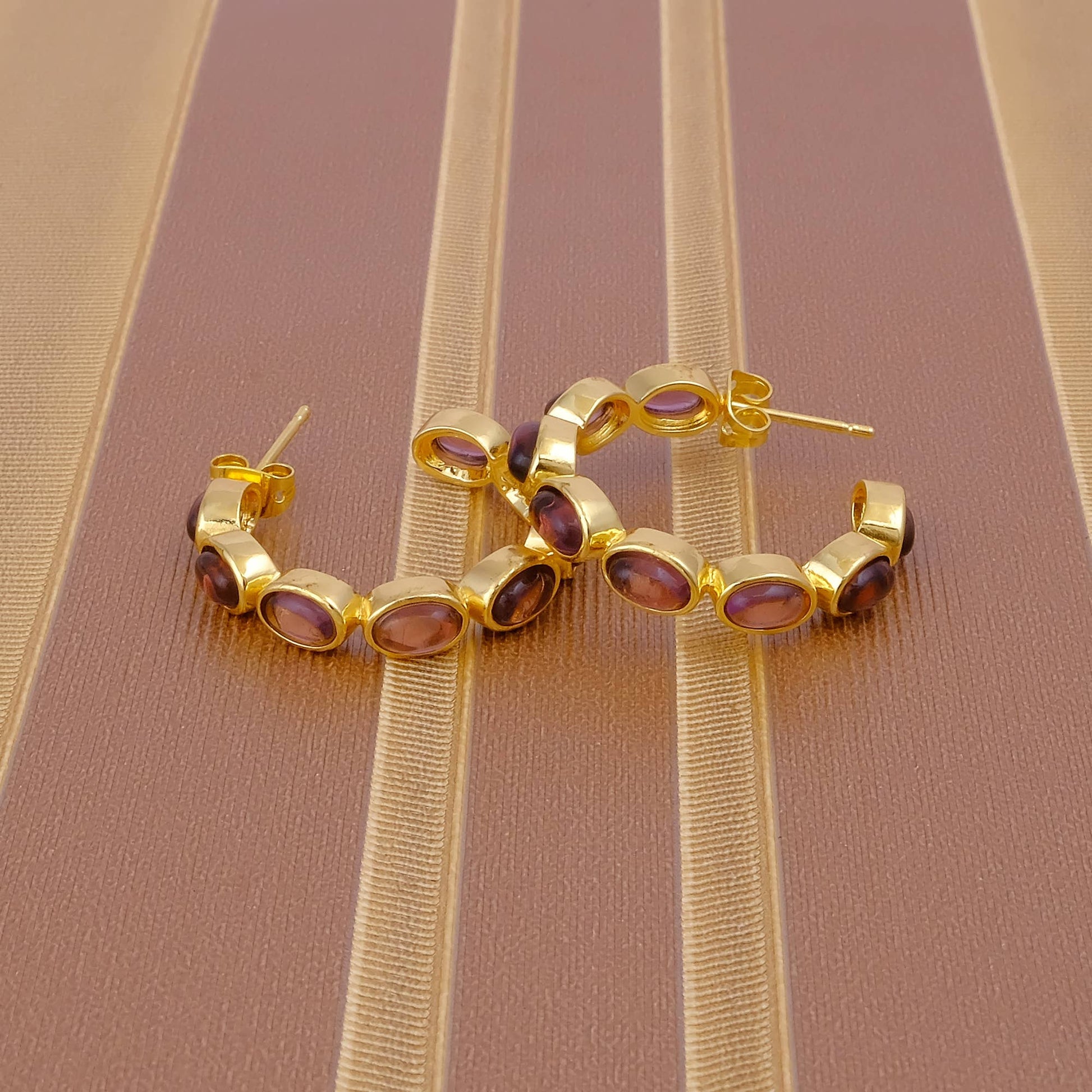 Amethyst Quartz Oval Stud Handmade Hoop Earrings