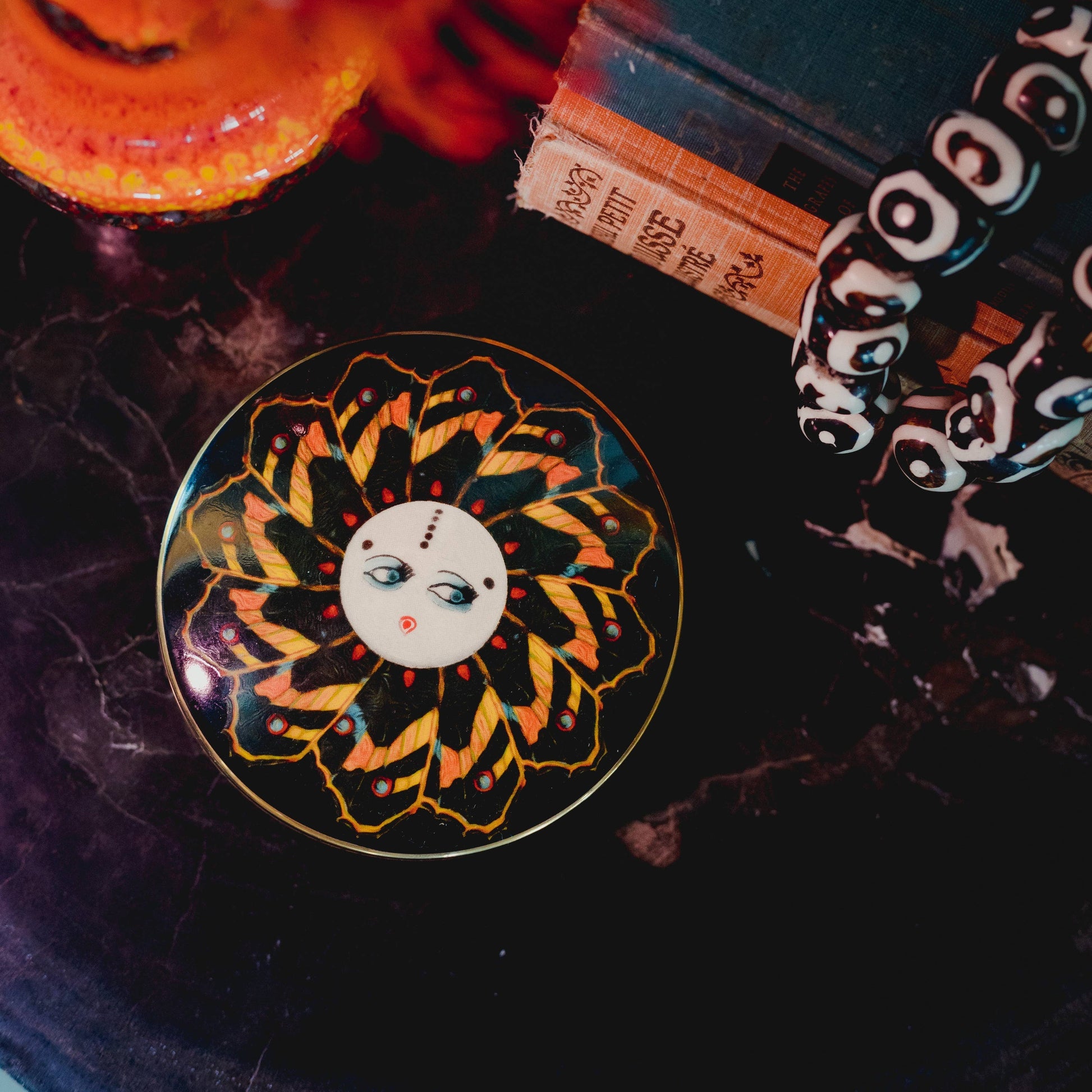 Decorated with 22 kt gold. High-fired porcelain with gold accents. With a removable lid and comes beautifully boxed for gifting or storing.