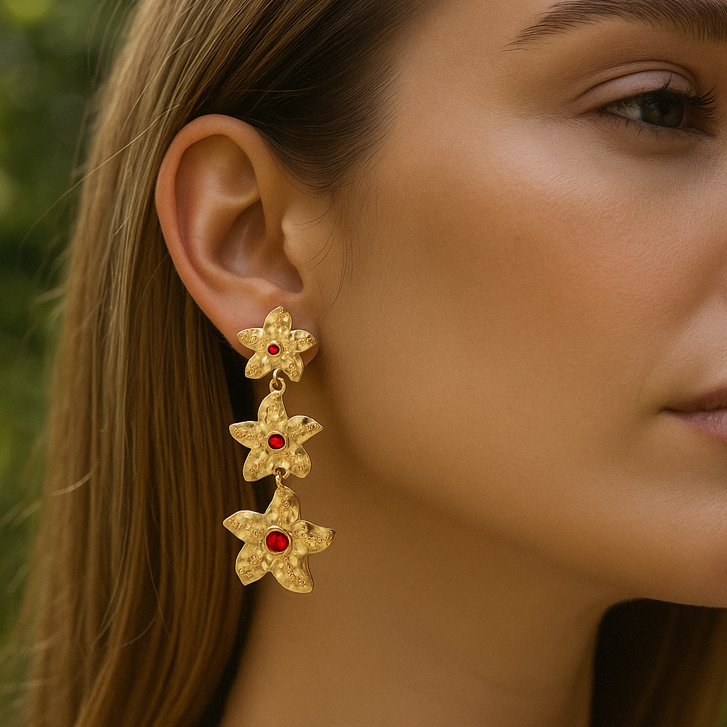 Bring a splash of seaside charm to your style with our elegant Garnet Quartz Starfish Handmade Drop Earrings. Featuring three delicately crafted starfish adorned with warm citrine quartz gemstones, these earrings capture the golden glow of summer days by the ocean. Handcrafted with care, they offer both elegance and playfulness, making them perfect for vacations, beach weddings, or everyday wear.