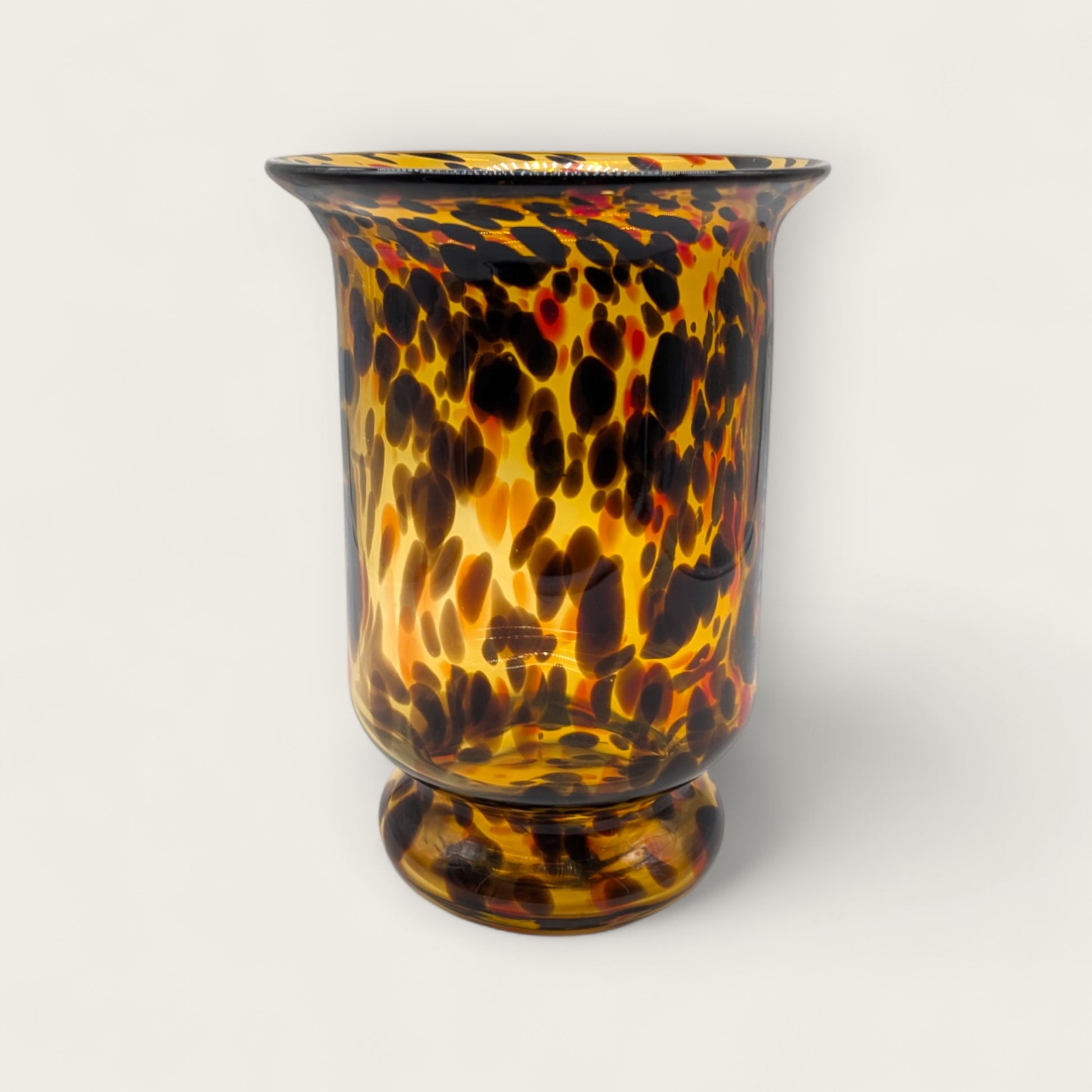 Large Black and Amber Tortoise Shell Hurricane Glass Vase