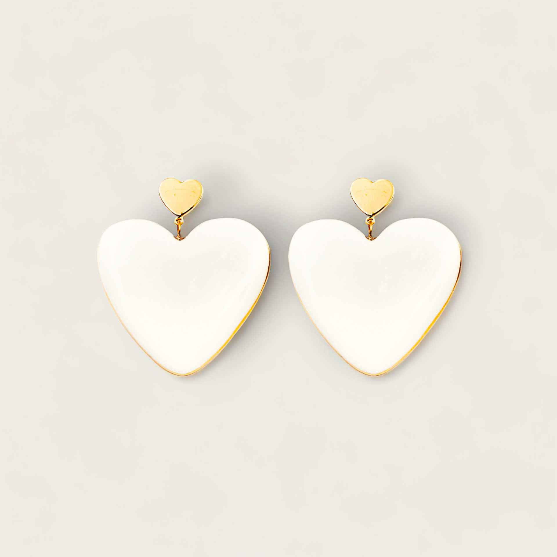 Add a playful yet refined touch to your look with these Handmade Large Porcelain Heart Earrings. Expertly crafted from delicate porcelain, each heart pendant showcases unique artistry and a smooth, radiant finish. Lightweight and comfortable, they feature elegant gold-plated accents that enhance their charm. These earrings effortlessly blend sophistication with whimsy, making them a perfect accessory to elevate both everyday and special occasion outfits.