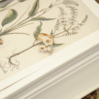 This exquisite adjustable ring merges artisanal craftsmanship with wearable elegance. Handcrafted porcelain paired with gold-plated brass creates a statement piece that celebrates nature's beauty through delicate harvest and floral motifs. Each ring is individually hand-painted with gold leaf accents, ensuring no two are identical. The nickel-free, hypoallergenic metal makes it perfect for sensitive skin, while the adjustable fit ensures lasting comfort. A timeless accessory that transforms everyday moments into something truly special.