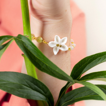 Nach Jasmine Flower Morganite Beads Handmade Bracelet