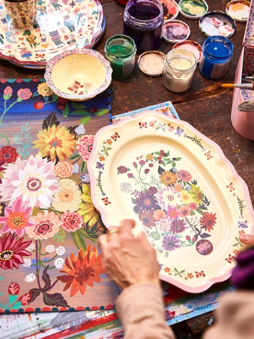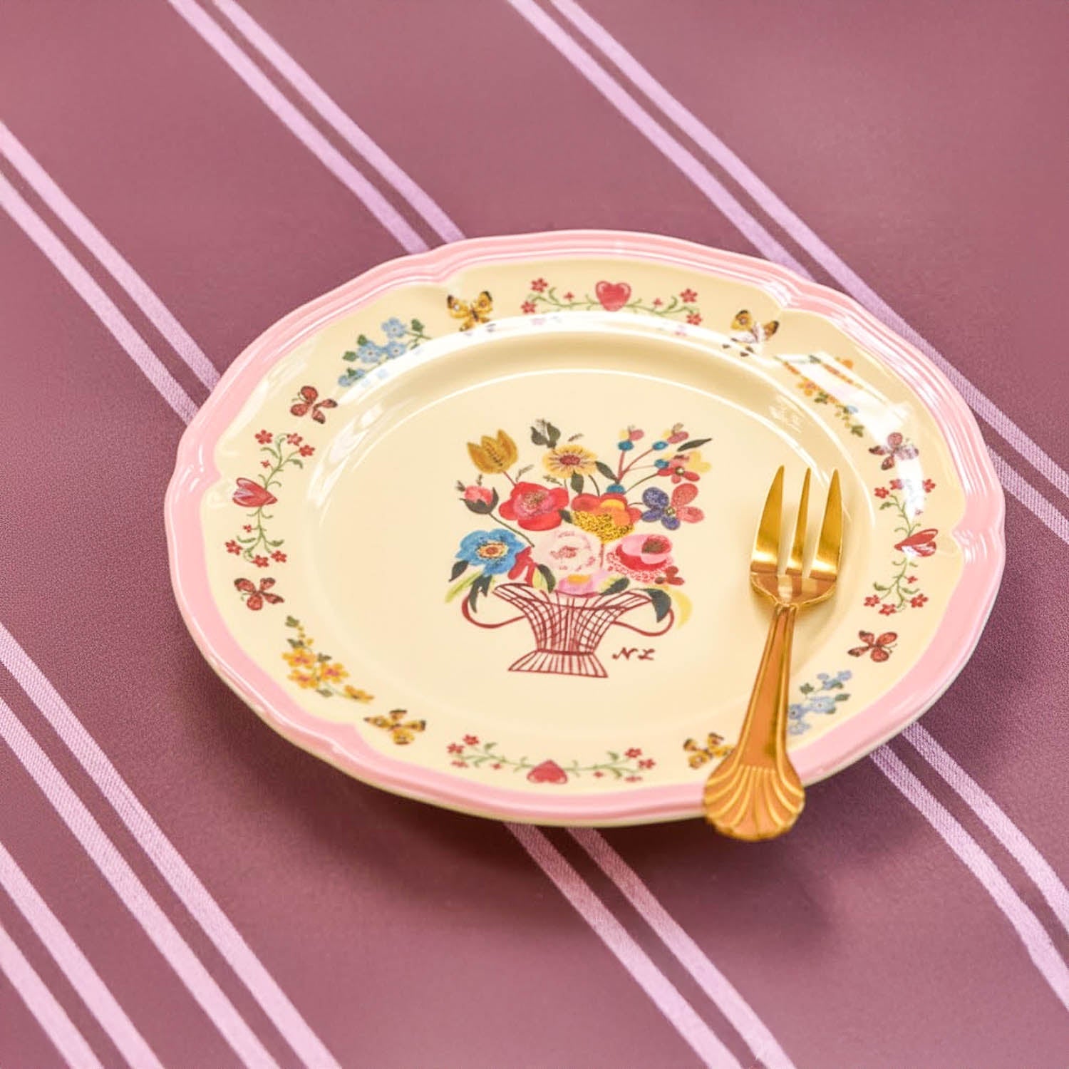 This unique collaboration between Rice and Nathalie Lété transforms the ordinary into a magical moment, one plate at a time. The quirky side plate has a gorgeous vintage-inspired design featuring a charming bouquet of flowers in the centre. Crafted from durable melamine, it is a robust choice for daily use, is easy to clean, and will not absorb colour or flavour from food. You can trust that our melamine is safe and well below all EU food safety requirements, making this a truly unusual and smart addition to your tableware.