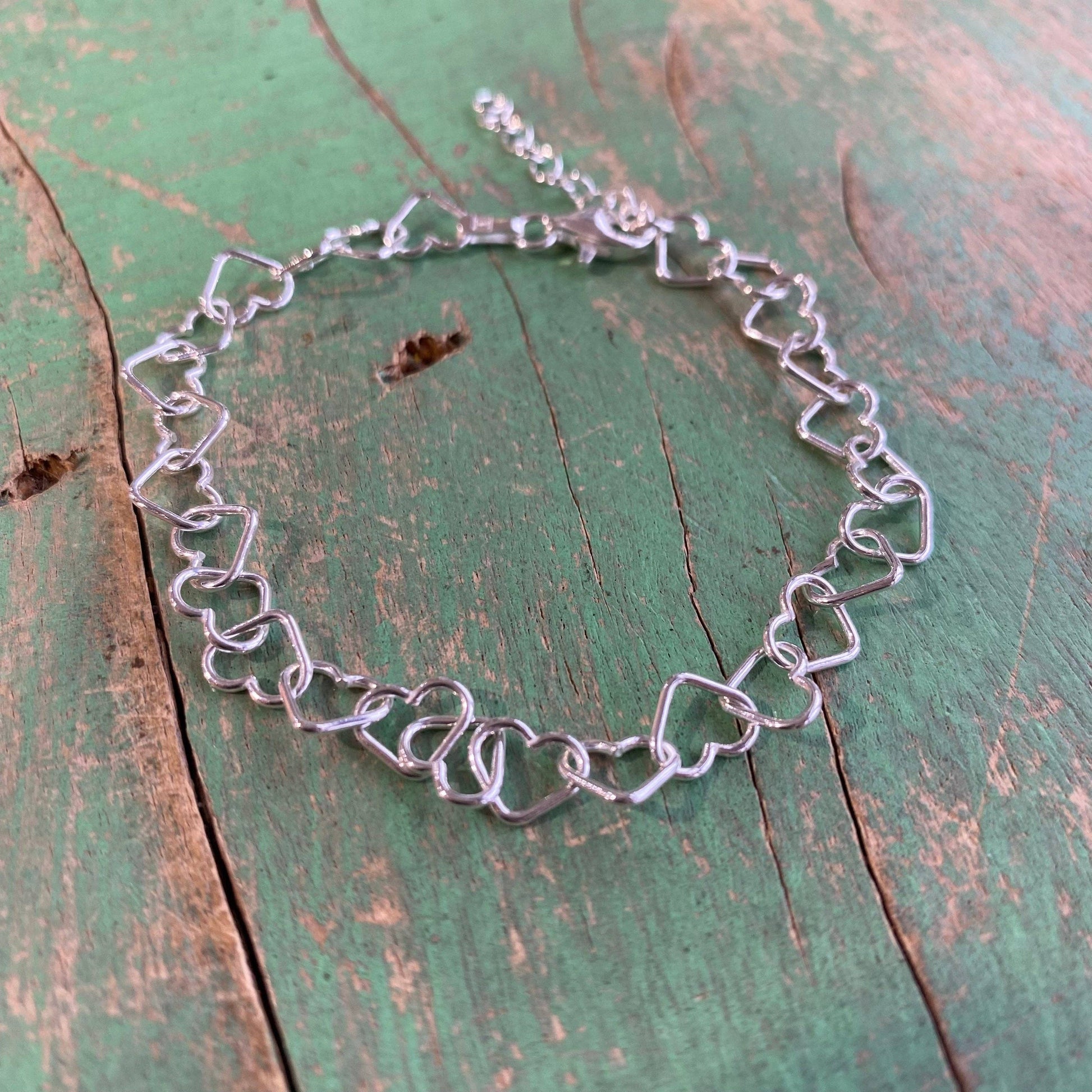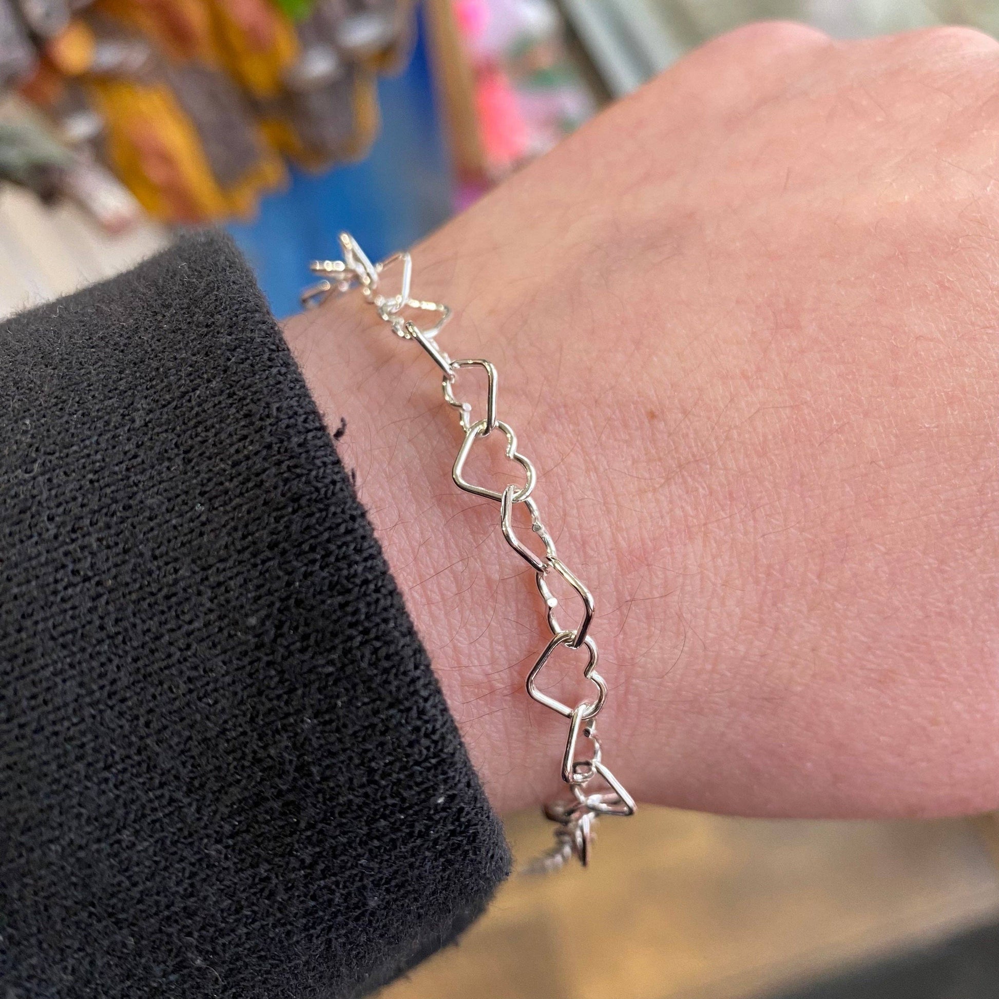 This charming Sterling Silver Heart link chain bracelet, measuring 7 inches with a 1-inch extension, offers a perfect fit for any wrist size.